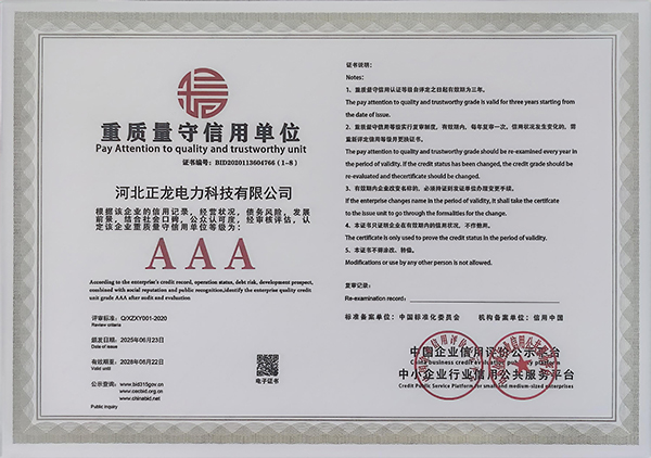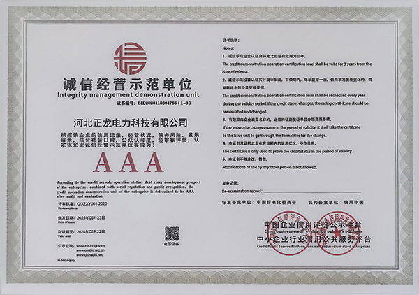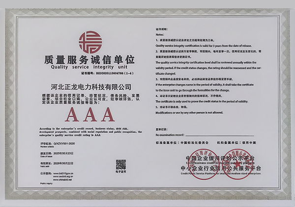 河北正龙电力科技有限公司的诚信、实力和产品质量获得业界的认可。自公司成立以来,本着“客户为先,服务为本”的经营理念,服务于新老客户,获得新老客户的好评,现有完整的线上线下销售渠道,完整、科学的产品管理体系,所生产的产品销往各地。